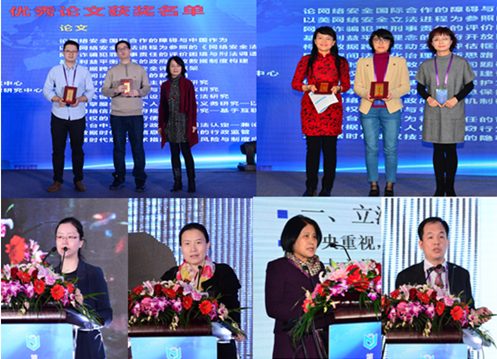 大会主题演讲部分由公安部第三研究所副研究员黄道丽主持。《情报杂志》主编张薇、《西安交通大学学报(社科版)》编辑冯蓉、《信息安全研究》主编李新友分别为大会一二三等奖的论文作者颁发证书。西安交通大学信息安全法律研究中心王玥副教授代表中国云计算安全政策与法律工作组发布了《中国云计算安全政策与法律政策蓝皮书(2016)》。公安部十二局处长果园、全国人大常委会法工委经济室原副巡视员宋燕妮、上海段和段律师事务所合伙人刘春泉分别以“国家数据主权法律探析”、“网络安全法立法进程及主要特点”、“从反电信诈骗举措效果看网安法合规”为主题作大会主题报告。中国社科院法学所研究员陈欣新进行精彩点评。