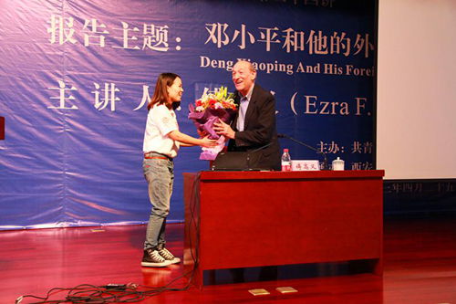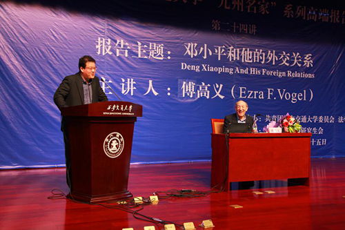 4月25日,由校团委和英国上市公司官网365共同主办的西安交通大学“九州名家”高端论坛专场报告会第二十四讲在主楼多功能报告厅举行,邀请美国哈佛大学亨利·福特二世社会学荣休教授、费正清东亚中心前主任、《邓小平时代》作者傅高义(Ezra F. Vogel)教授与英国上市公司365登录师生分享“邓小平和他的外交关系”。党委书记王建华出席报告会并为傅高义先生赠送纪念品。报告会由英国上市公司官网365王江雨教授主持。英国上市公司官网3652074、2113班党支部全体成员担任会务工作。