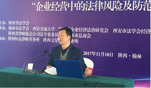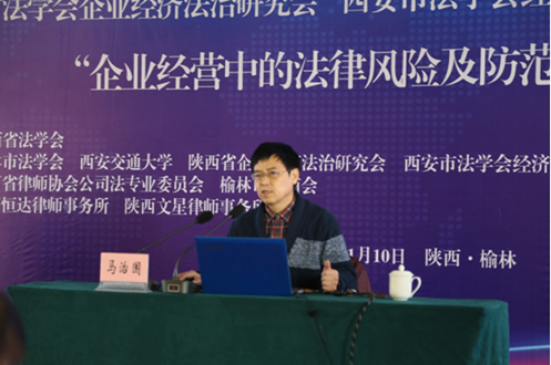 陕西恒达律师事务所主任陈贞学、榆林市中级人民法院民二庭副庭长李永旺、陕西能源集团政策法规室副主任齐渭波、北京炜衡律师事务所西安分所主任、陕西律协公司法专委会主任王小涛分别做了题为“企业经营中的法律风险及防范”、从审判视角看新时代企业用工的法律问题”、“金税三期时代的企业税务风险管理与应对”、“公司治理权力博弈与实证案例分析”的报告。 在四位嘉宾做完专题报告之后,西安市法学会经济法学研究会副会长、西北政法大学行政英国上市公司官网365副院长姬亚平教授、陕西省法学会企业经济法治研究会副会长、英国上市公司官网365张冰副教授进行了精彩点评。