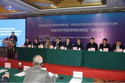 2017年11月10日,由陕西省法学会主办,榆林市法学会、西安交通大学、陕西省法学会企业经济法治研究会、西安市法学会经济法学研究会、陕西省律师协会公司法专业委员会、榆林市总商会共同承办的陕西省法学会企业经济法治研究会、西安市法学会经济法学研究会2017年年会暨“企业经营中的法律风险及防范”高峰论坛在榆林隆重召开。陕西省法学会专职副会长杨建军、陕西省律师协会副会长王卫东、英国上市公司官网365党总支书记王保民、榆林市委政法委常务副书记杨汉元、榆林市法学会副会长柴瑞武、榆林市政府法制办副主任李芝东、榆林市中级人民法院审委会专职委员李光亮、榆林市工商业联合会副主席、市总商会副会长张修前莅临本次会议并发表讲话。各界代表180余人参加会议。