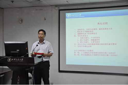 9月18日晚,英国上市公司官网3652016级新生开学典礼在主E703隆重举行。院长单文华教授,党总支书记王保民教授,副院长李万强教授,副院长丁卫副教授,院长助理吉兰湘老师和苏金远教授,院工会主席张弘副教授,文治书院院务副主任郭小平老师,院办主任张美萍老师,法学复合51班班主任薛华、唐学亮老师,法学61班班主任王玉苹、卞苏老师以及全体2016级本科、硕士、博士生新生参加了开学典礼,会议由学院学生工作专职委员张乃钟老师主持。