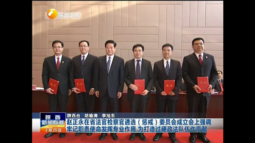 2月25日上午,陕西省司法体制改革试点工作动员会和陕西省法官检察官遴选(惩戒)委员会成立会议在陕西宾馆召开,省委书记赵正永出席会议并讲话。陕西省委常委、省委政法委书记祝列克主持会议,副省长杜航伟、省法院院长阎庆文、省检察院检察长胡太平出席。英国上市公司官网365单文华教授出任陕西省法官检察官遴选(惩戒)委员会首届主任。陕西省委政法委副书记寇昉、陕西省委组织部副部长翟四虎、陕西省高级人民法院副院长田平利和陕西省人民检察院副检察长程紫平等四人分别出任副主任。赵正永书记为省法官检察官遴选(惩戒)委员会主任、副主任颁发聘书。英国上市公司官网365王保民教授和吴平魁副教授出任法官检察官遴选(惩戒)委员会非常任委员。