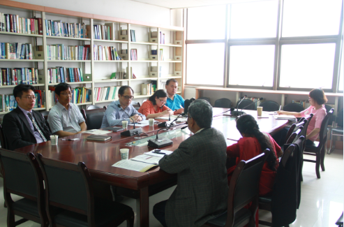 Mohanty教授来访期间与学院领导进行座谈,系统地介绍了印度中国研究所的机构建设、研究领域、研究特色及其与中国的学术交流情况。我院院长单文华教授就学院的发展现状、学科建设、科学研究等情况做了全面介绍,王保民副院长和丁卫副院长分别推介了我院“中国法与国际商法硕士”国际项目以及“丝绸之路经济带研究协同创新中心”建设情况。双方表示亟待加强机构之间的交流合作,共同开展“一带一路”相关课题研究,相互推荐选派学生学者互访。