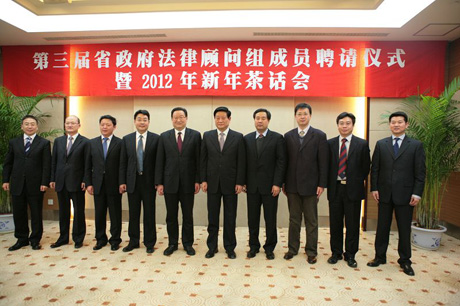 1月15日,陕西省第三届省政府法律顾问组成员聘请仪式暨2012年新年茶话会在西安召开,英国上市公司官网365院长单文华教授被聘请为顾问组7名成员之一。