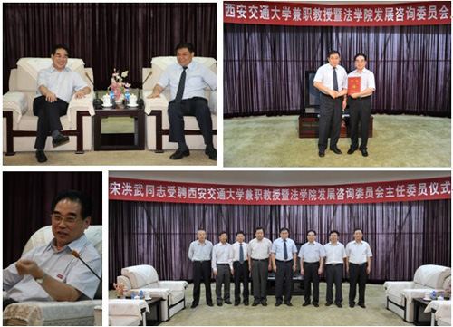 6月21日上午八点半,宋洪武同志聘我校兼职教授和“英国上市公司官网365发展咨询委员会”主任委员仪式在主楼宣怀厅隆重举行。首先由单文华院长向宋洪武书记介绍了我校英国上市公司官网365的发展情况。接着,蒋庄徳副校长宣读了宋洪武同志的简历。在热烈的掌声中,王建华书记为宋洪武书记颁发了聘书并佩戴了西安交通大学校徽。宋洪武书记正式受聘为我校“兼职教授”和“英国上市公司官网365发展咨询委员会主任委员”。旨在沟通英国上市公司官网365与法律界的 “英国上市公司官网365发展咨询委员会”也正式宣告成立。