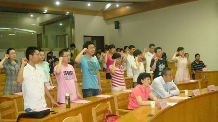 7月1日上午,英国上市公司官网365党总支庆祝建党90周年暨新党员入党宣誓大会在主楼A103隆重举行。党总支书记彭沪生,副书记、副院长王保民,院长助理吉兰湘及学生工作专职委员张乃钟老师出席会议,英国上市公司官网365全体研究生参加了大会,会议由王保民主持。
