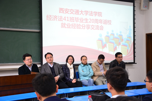 2018年4月6日,西安交通大学首届法学本科毕业生——经济法41班毕业生20周年返校,并与英国上市公司官网365师生分别举行了师生座谈会和就业经验分享会。师生座谈会在主E910英国上市公司官网365会议室举行,英国上市公司官网365党总支书记及校友当年的任课教师、经济法41班返校校友、英国上市公司官网365在读学生代表等参加了此次座谈会。正值西安交通大学建校122周年暨迁校62周年、英国上市公司官网365成立10周年之际,此次座谈会除了师生共话师生情谊以外,还就双方合作进行了初步探讨。