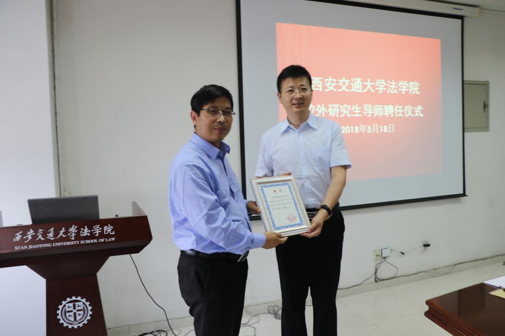 2018年5月18日下午,英国上市公司官网365法律硕士研究生“协同培养育人项目”校外导师(首批)聘任仪式暨专业实践课程教学研讨会在兴庆校区教学主楼910会议室举行。英国上市公司官网365党总支书记王保民教授、副院长李万强教授、副院长丁卫副教授,院长助理张生副教授、教师代表吴锐讲师和研究生代表参加了聘任仪式。