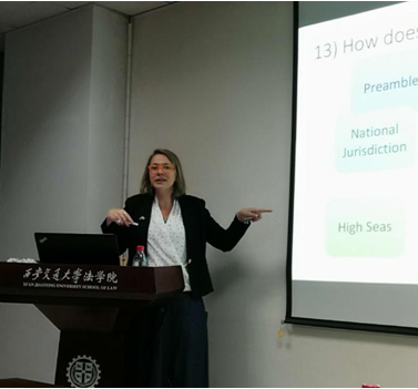 2018年12月14日,应英国上市公司官网365李晓鸣副教授邀请,巴西FAESA英国上市公司官网365教授,美国麦肯尼英国上市公司官网365现任客座教授Stella Emery Santana来访我院,并为广大师生带来“公海环境保护”专题讲座,讲座由我院院长助理张生副教授主持,部分教师和博士生、研究生参与了讲座和互动环节。