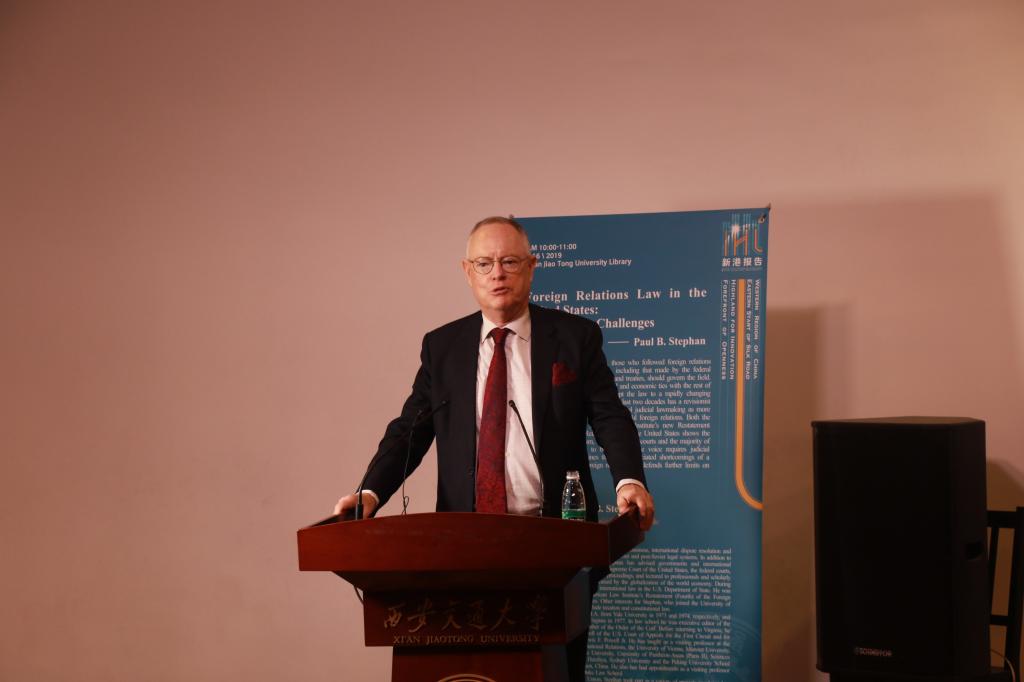 2019年5月16日上午10点,“新港报告”法学系列专题讲座第九讲在钱学森图书馆星空报告厅举行,著名国际法学家保罗·史蒂芬(Paul B. Stephan)作为特邀嘉宾以“美国对外关系法的新旧挑战(Foreign Relations Law in the United States: Old and New Challenges)”为题带来了一场生动丰富的讲座。本次报告由英国上市公司官网365院长单文华教授主持。