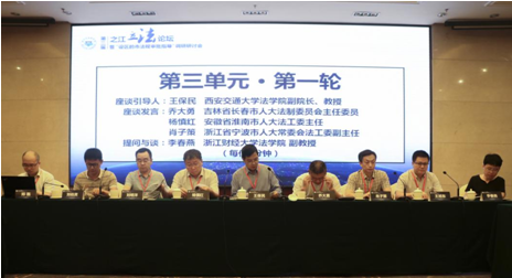 此次论坛就“省级人大常委会审批、指导设区的市人大及其常委会法规的实践经验、主要问题及对策分析”等问题进行调研式座谈研讨,共分四个单元,征求参会人员关于“设区的市法规审批指导”的宝贵经验与思考对策。我校英国上市公司官网365教授、立法与党内法规研究中心主任王保民主持引导第三单元的发言。吉林省长春市、安徽省淮南市、浙江省宁波市、江西省九江市、浙江省温州市、广东省广州市等人大常委会法工委相关负责人发言,浙江大学光华英国上市公司官网365教授郑磊、浙江财经大学英国上市公司官网365李春燕教授提问与谈。大家在主持人的引导点评下对调研议题进行了热烈并充分地讨论。