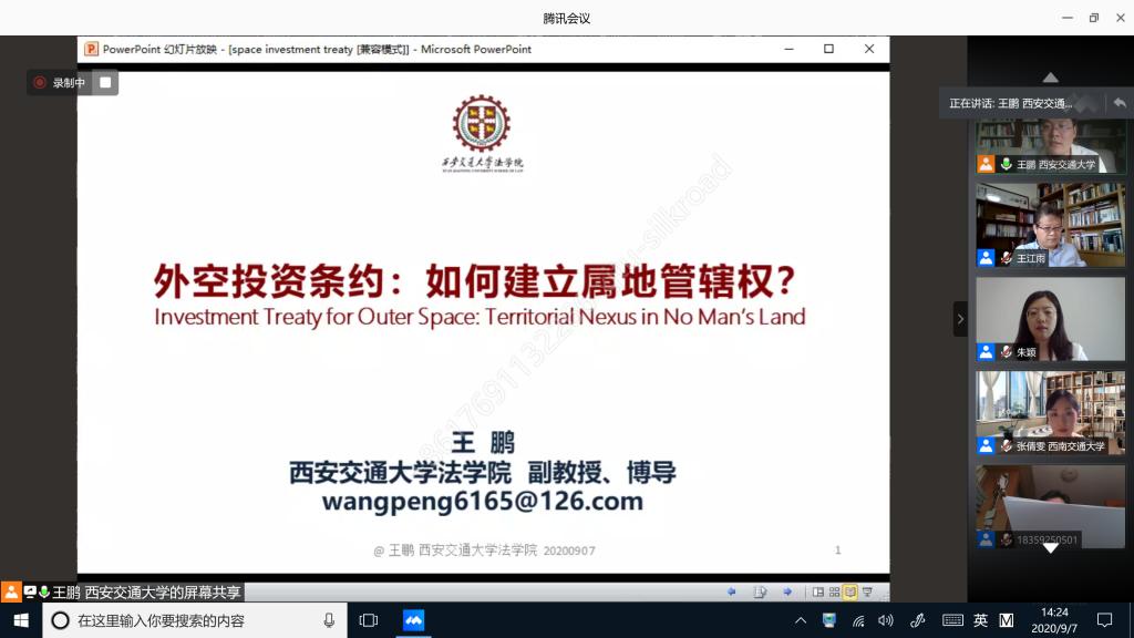 2020年9月7日,西安交通大学丝绸之路国际法与比较法研究所成功举办了国际法前沿论坛。作为“科创月”系列活动“丝绸之路国际法与比较法高峰论坛”之一,论坛采取线上与线下相结合的方式举办,与会人员围绕国际法学术前沿问题,展开了热烈的讨论。