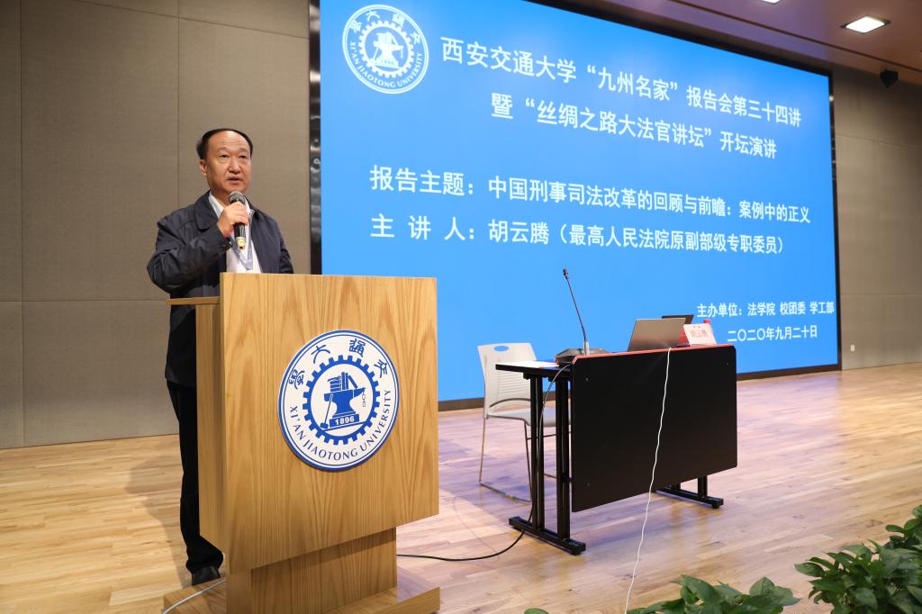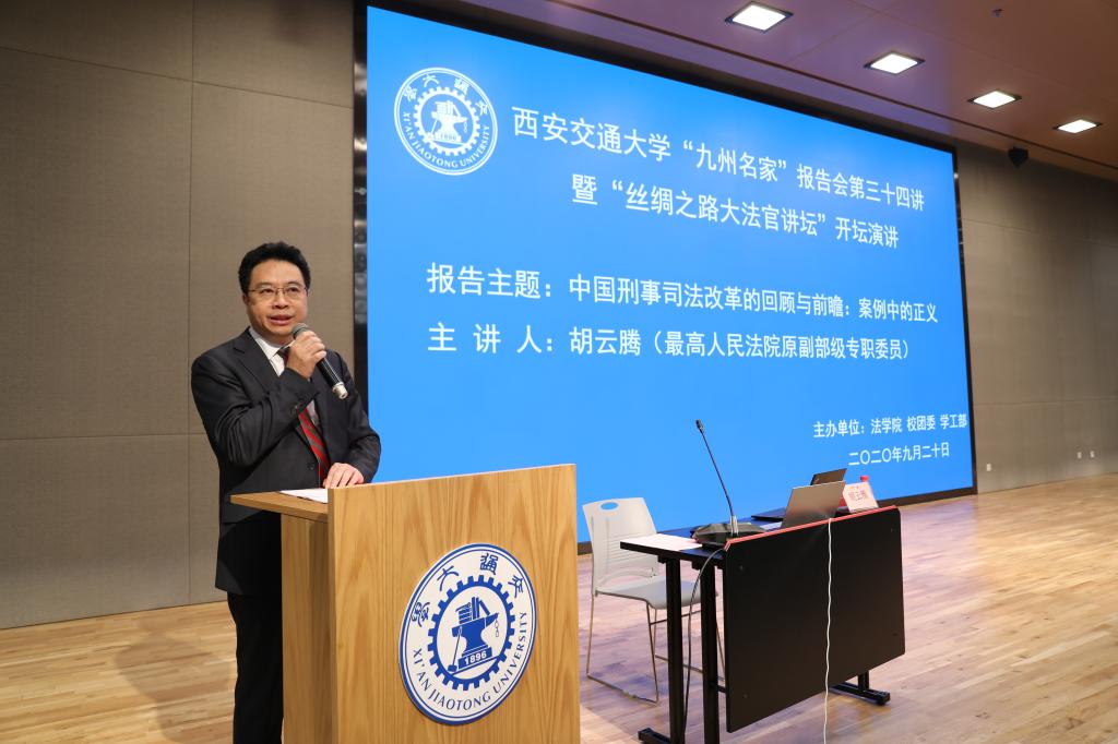 2020年9月20日,最高人民法院原副部级专职委员胡云腾大法官在中国西部科技创新港开坛论道,以《中国刑事司法改革的回顾与前瞻:案例中的正义》为题,畅谈中国司法改革40余年变化与成就。王树国校长在涵英楼11楼会见了胡云腾大法官。校党委副书记赵昌昌出席了报告会并致辞,校团委书记苏翔,陕西省律师协会会长韩永安,贸仲丝路中心秘书长助理蒋红梅,英国上市公司官网365副院长李万强,英国上市公司官网365副院长丁卫老师一并出席报告会。报告会由英国上市公司官网365院长兼国际教育学院院长单文华主持。