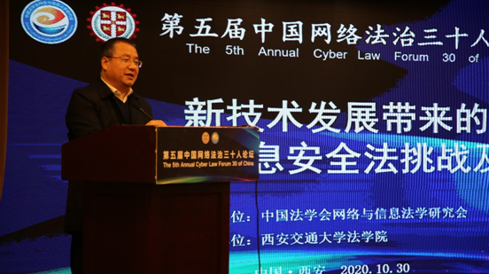 中国法学会网络与信息法学研究会负责人、中国社科院法学所副所长周汉华研究员在致辞中指出,网络法治30人论坛自2016年设立以来,在中国社科院法学所、华东政法大学、中南大学、西安交通大学、中国信息通信研究院、西南政法大学、暨南大学等成员单位的支持下,从北京、上海、长沙、重庆,一路来到古老而又充满青春活力的古都西安。一路走来,论坛的队伍越来越大,朋友越来越多,覆盖的议题越来越广泛,讨论的水平越来越高,活动与成果的影响力越来越大。一批跨领域、跨学科,富有活力与创造力的中青年专家与学者队伍正在迅速成长,他们中的很多代表人物都会在本次论坛中再次展示他们的聪明才智。网络信息法面临的从来都是难点、热点和焦点问题,这在传统教科书中没有答案,需要创新、创造。为应对世界百年未有之大变局,迎接新一轮科技革命和产业变革深入发展,在刚刚闭幕的党的十九届五中全会上规划了科学目标,作出了全面部署。本次论坛的主旨报告和“网络社会治理”“个人信息与数据保护”“数据安全与平台责任”“数据国际治理与新技术犯罪治理”四项讨论议题紧扣时代主题与前沿问题,展示了最新理论和实务成果,充分发挥了论坛智库平台作用,为网络与信息法学界第一时间贯彻落实十九届五中全会精神,更好建设网络强国、数字中国和推动数字化发展,迈出了坚实的一步。