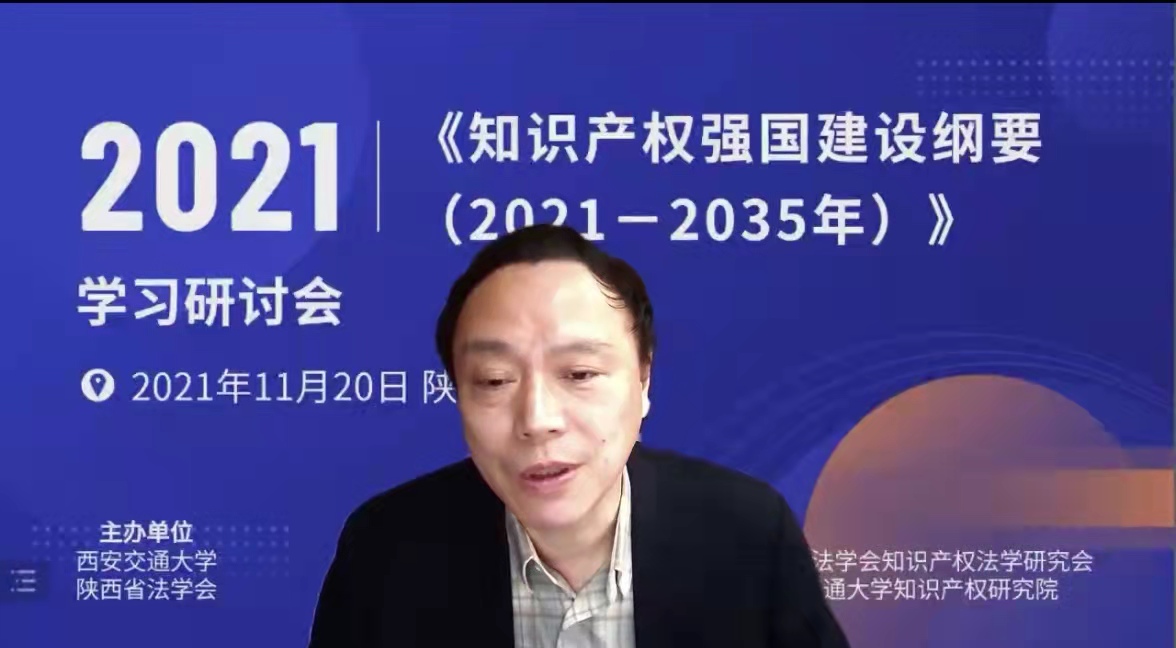11月20日上午,为深入贯彻学习《知识产权强国建设纲要(2021—2035年)》《“十四五”国家知识产权保护和运用规划》等重要政策文件精神,论证知识产权学科和知识产权人才培养模式建设,研讨新形势下如何推进学科高质量发展,西安交通大学知识产权研究院举办了《知识产权强国建设纲要(2021—2035年)》学习研讨会。本次会议由西安交通大学和陕西省法学会主办,陕西省法学会科学技术法学研究会、西安市法学会知识产权法学研究会、西安交通大学知识产权研究中心、西安交通大学知识产权研究院承办。会议在中国西部科技创新港举行,线上和线下来自知识产权法学界的著名专家学者、领导嘉宾、实务工作者以及在校师生等一百余人参与了本次研讨会。