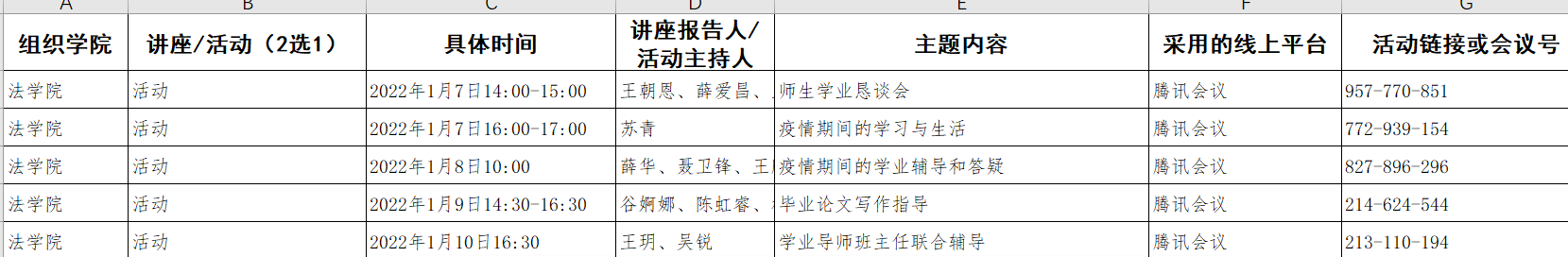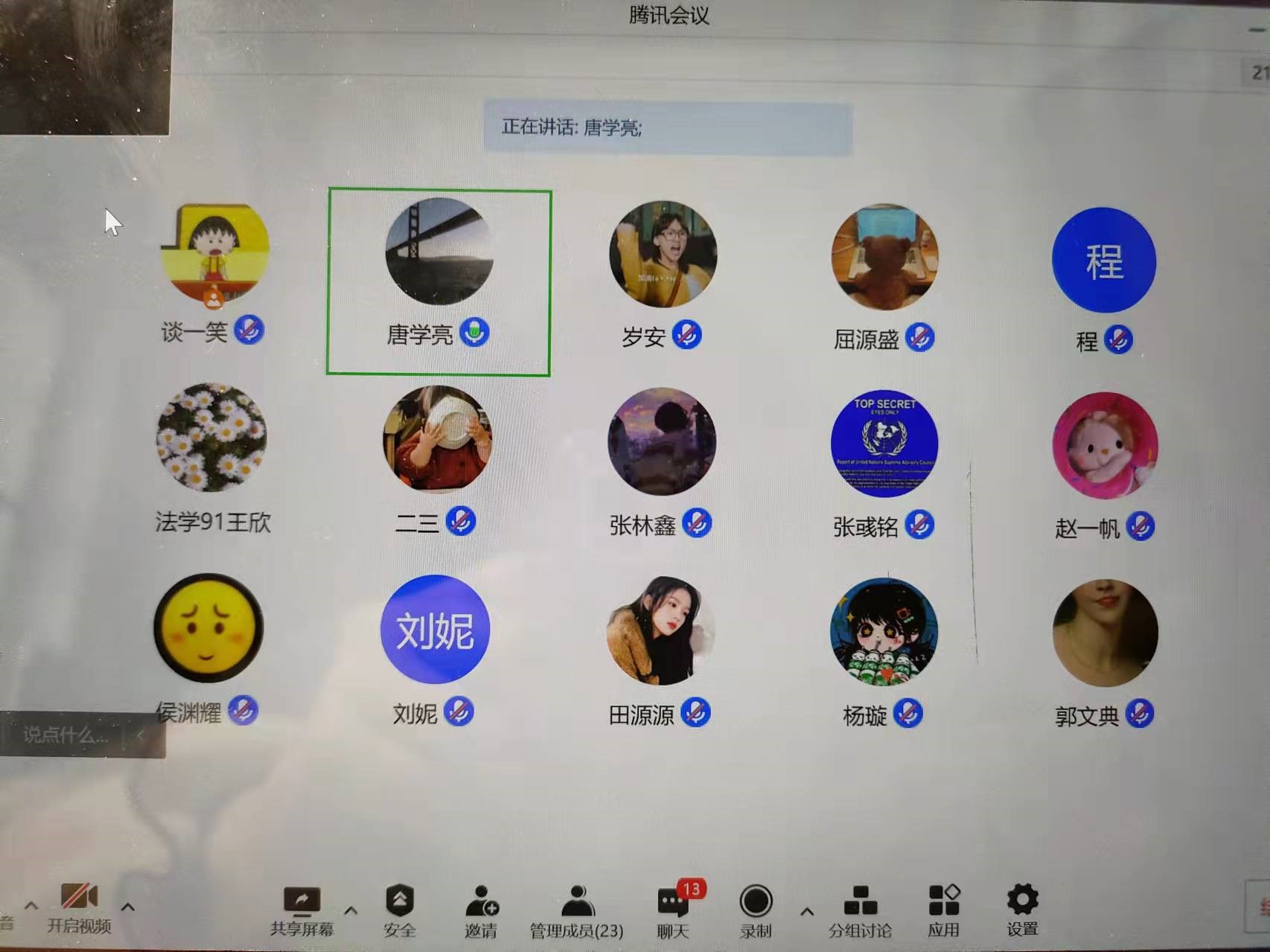 2022年1月8日上午,2020级学业导师和班主任与2020级全班同学齐聚在线会议。三位老师设身处地以共情分享的方式指导同学们合理进行生活安排,制定学习规划,和同学们交流分享老师们在疫情期间怎么工作安排,科研学习计划制定,锻炼健身等。薛华老师以“习近平总书记一直倡导的家风建设”为题,鼓励法学专业的同学们疫情期间,主动在宿舍这个小家庭里建立良好的互帮互助的社风,温暖周围每一位同学!