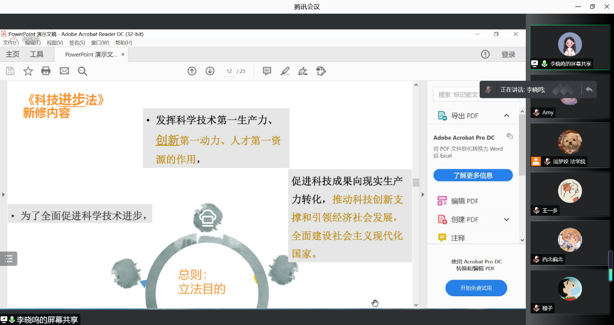 2022年1月9日晚上,英国上市公司官网365知识产权研究中心李晓鸣副教授对修订后的科技进步法的背景、新旧科技进步法的内容进行了对比,并对新科技进步法的亮点进行了详细介绍。同学们表示收获颇丰。